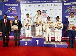 पहले दिन के परिणाम – जिला खेल अधिकारी डॉ महेश पालीवाल ने बताया कि पहले दिन मंगलवार को जुडो के पुरुष के 60 एवं 66 किलोग्राम भार वर्ग के मुकाबले आयोजित हुए, इसमें 60 किलोग्राम पुरुष वर्ग में डीएवी यूनिवर्सिटी पंजाब के अनुराग सागर को गोल्ड मेडल, एसआरटीएम के ओम समीर हिंग्मिरे को सिल्वर मेडल तथा एमएसयूएस के राहुल वर्मा तथा आरटीएमएन के योगेश उमेश शहाणे को ब्रॉन्ज मेडल मिला। इसी प्रकार 66 किलोग्राम पुरुष वर्ग में चौधरी देवी लाल यूनिवर्सिटी हरियाणा के विनय कुमार को गोल्ड मेडल, आरटीयू के आयुष माउरी को सिल्वर मेडल, एचएमएनजी के चौधरी प्रशांत राजन सिंह को तथा एसजीबीए के साबिर अकरम चौहान को ब्रोंज मेडल मिला।