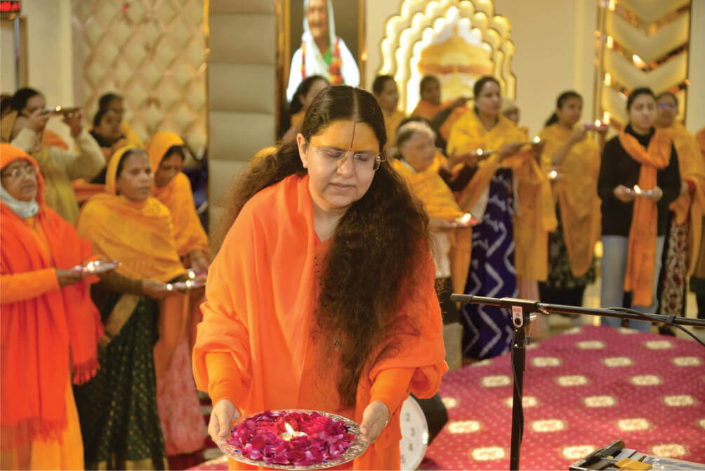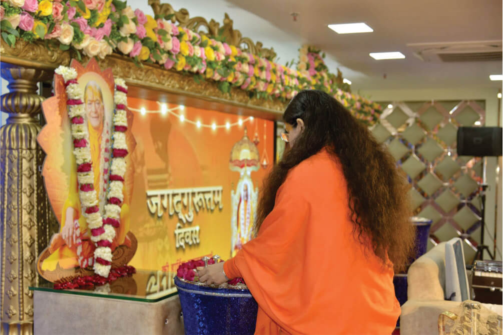पश्चात् गुरु महिमा सम्बंधित संकीर्तन करवाते हुए श्रीधरी दीदी ने समस्त विश्व समुदाय को जगद्गुरुत्तम दिवस की बधाई दी। गुरुपूजन इत्यादि कार्यक्रम हुए एवं भोजन प्रसादी के साथ कार्यक्रम सम्पन्न हुआ।