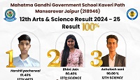 महात्मागांधी राजकीय विद्यालय कावेरी पथ मानसरोवर ने फिर रचा इतिहास, 12वीं आर्टस और साइंस का माध्यमिक शिक्षा बोर्ड परीक्षा परिणाम 100 प्रतिशत रहा